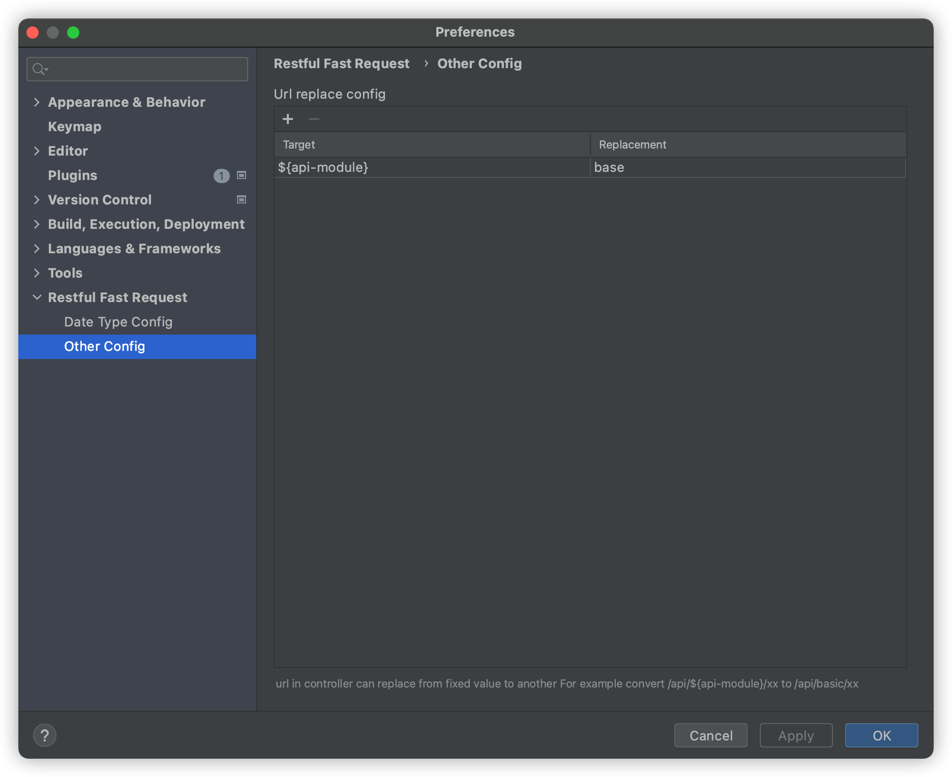 The actual url is /api/base/user,Then ${api-module} can be replaced by the following configuration