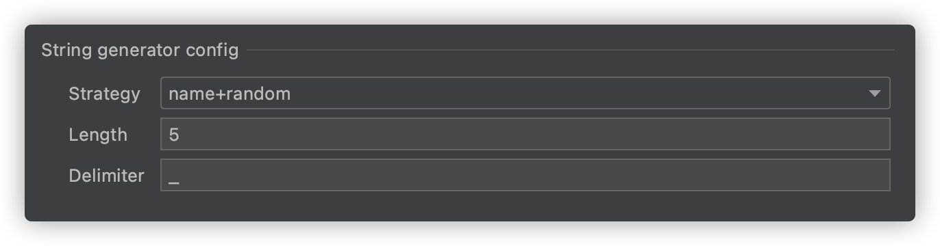 strategy * name+random(field name + random string) * random(random string) * none(not generate)