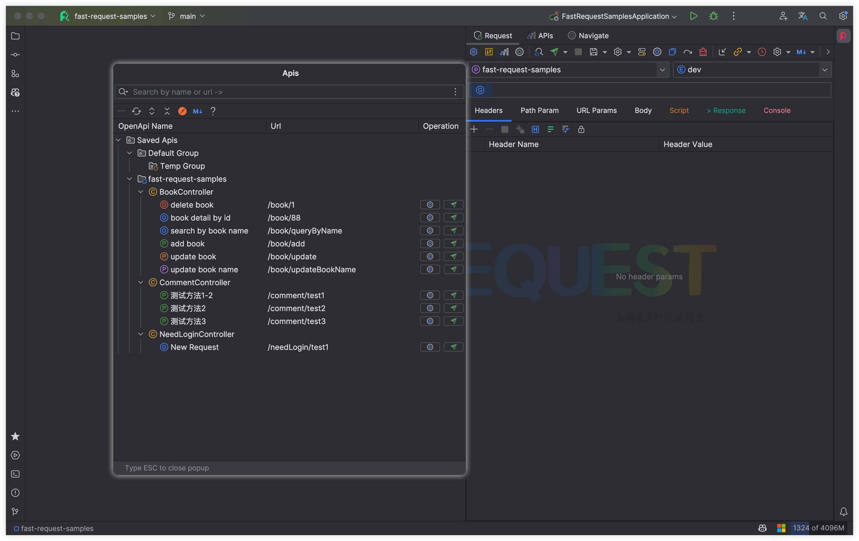 2.Switch the environment or project name directly, and then enter the corresponding key and value values in the headers form