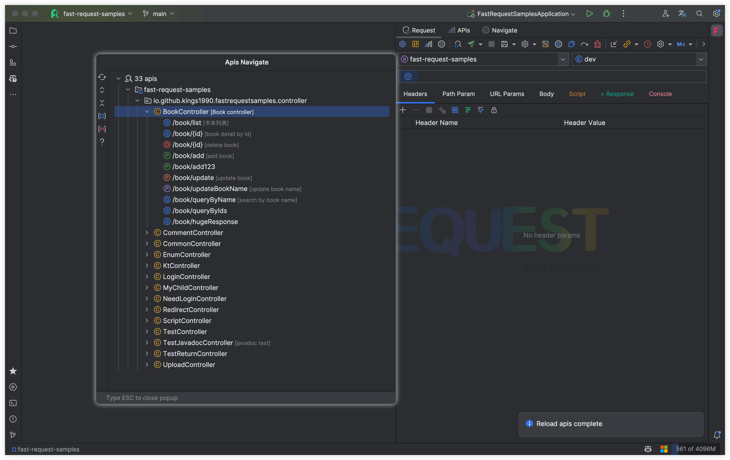 You can quickly open the Apis and Navigate window to view information through shortcut keys. When the window is open, press ESC to close the window.