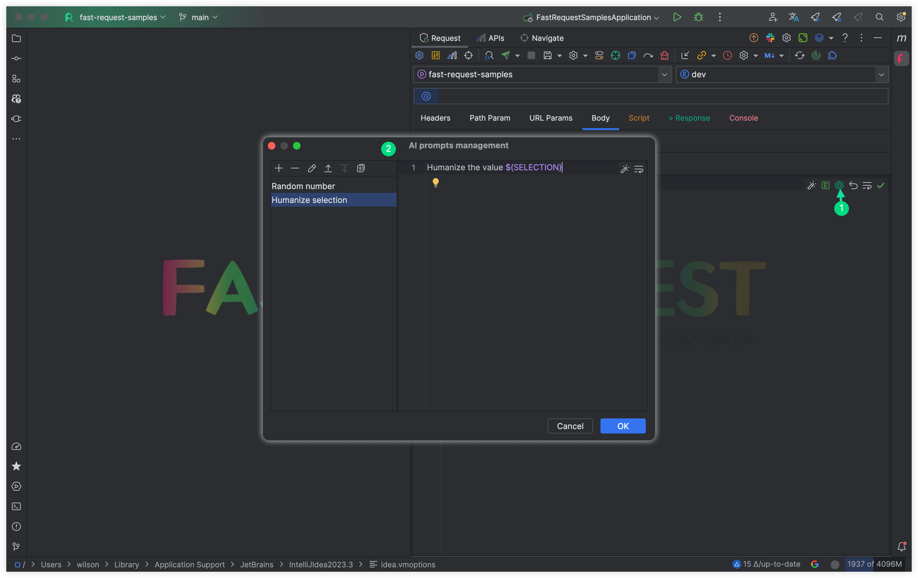 Added three forms of AI support: OpenAi, CodeGeeX, and Private deployment AI. Through prompt, selected text can be replaced with another text.