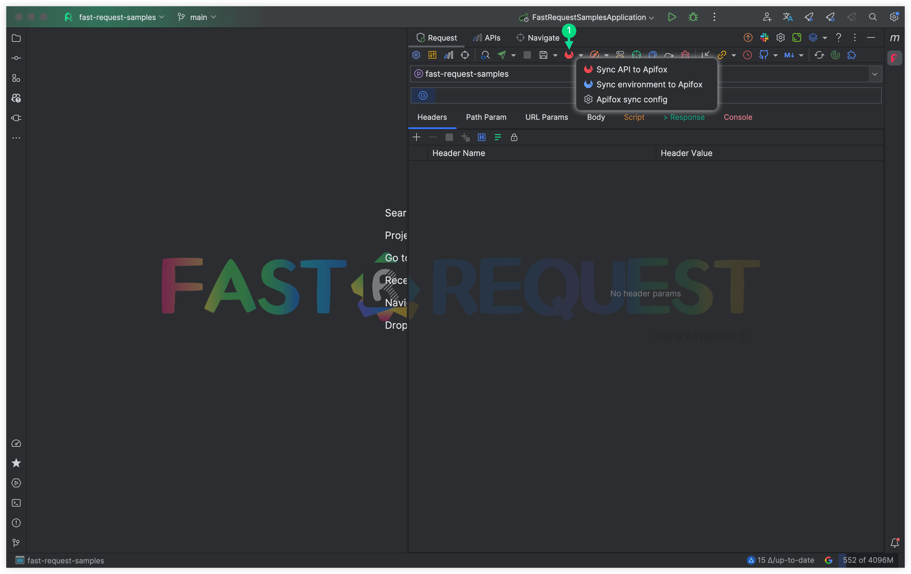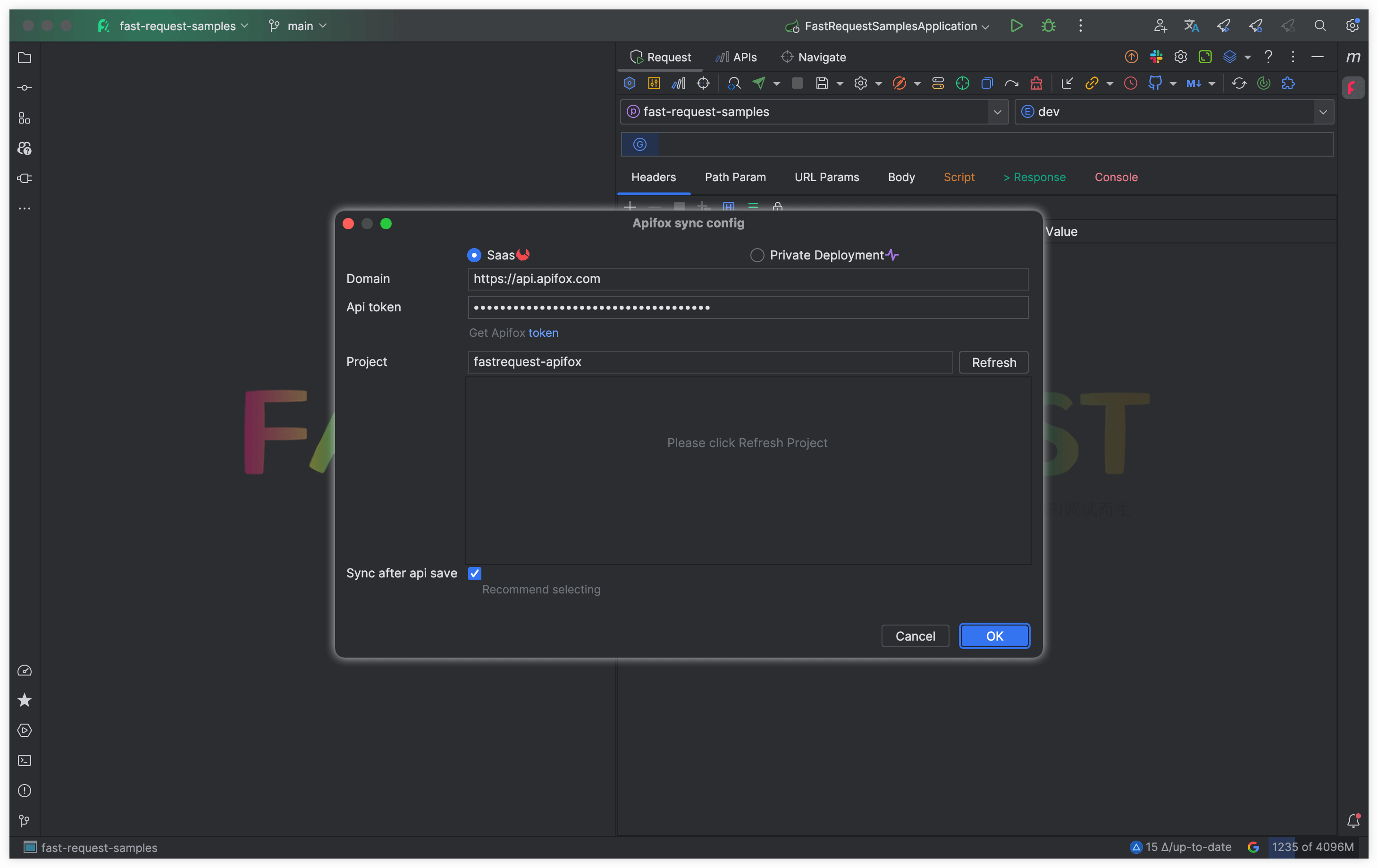 Apifox integration supports synchronization of APIs, environment variables, domain name information, etc. Just configure an API key and set the project mapping relationship to synchronize.