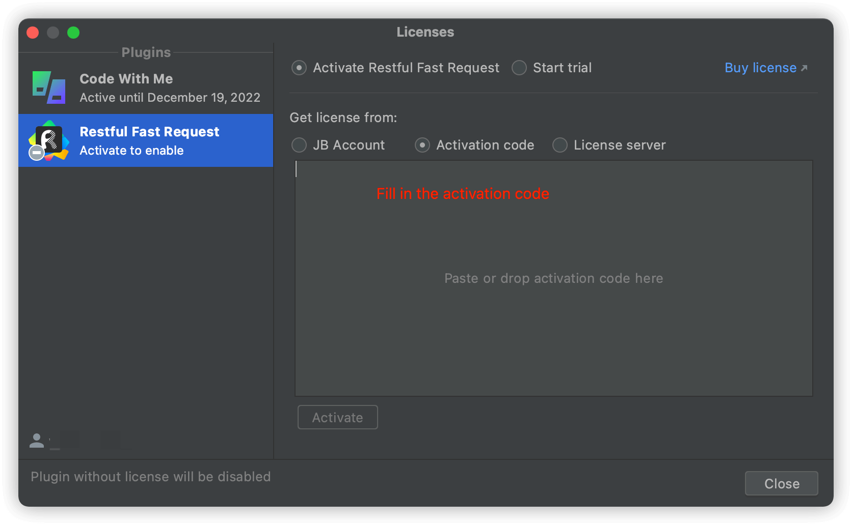 点击激活插件,当然你也可以先免费试用插件 30 天,点击 start trial。