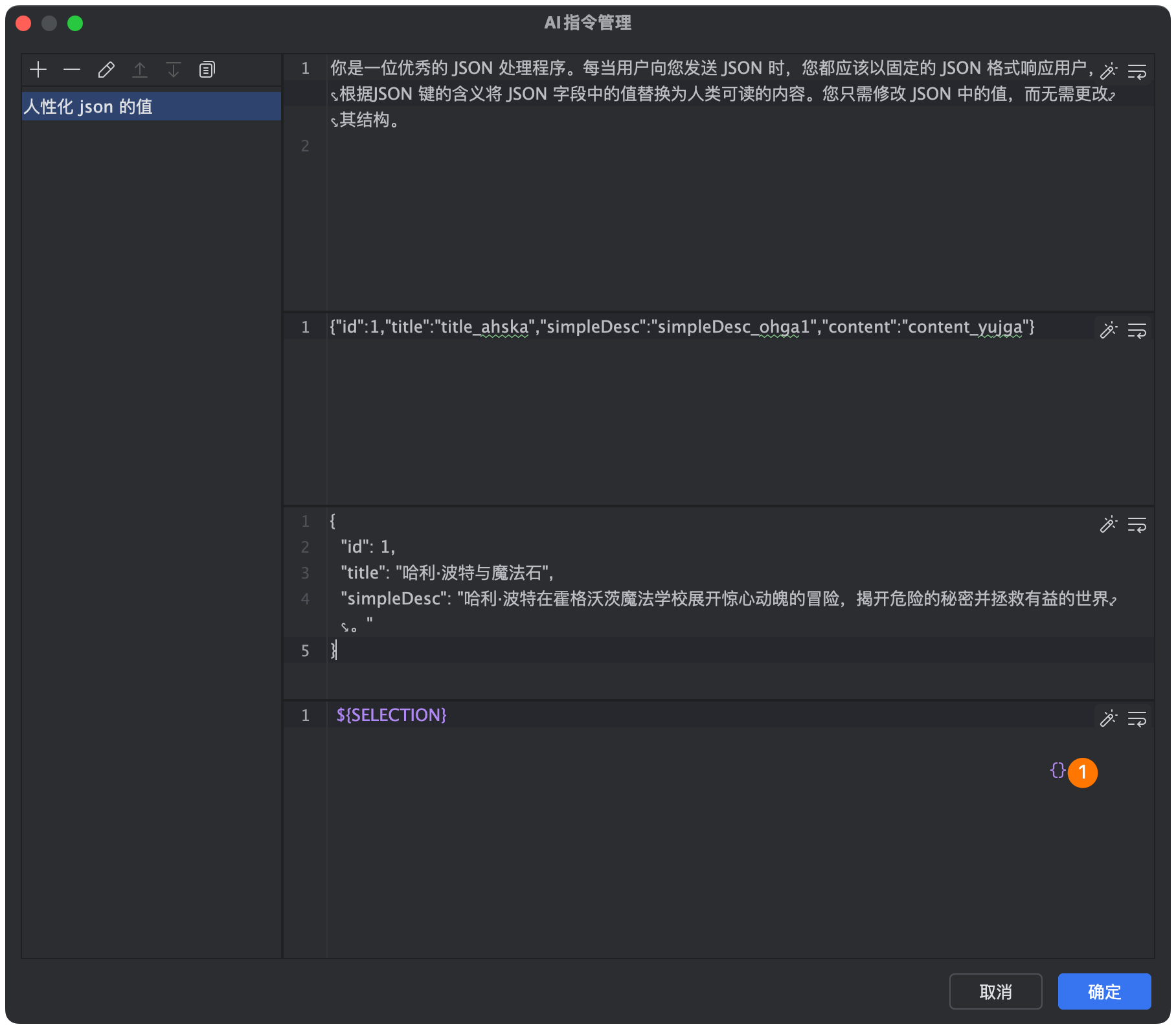 以下是一个让 AI 帮忙优化 JSON 报文的指令案例